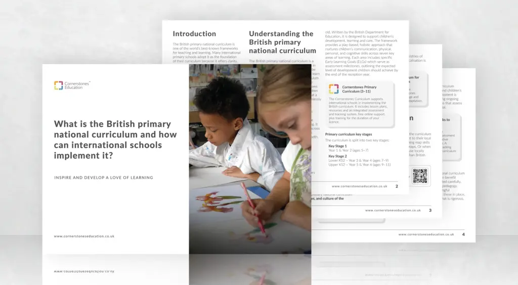 Schools implementing the British curriculum benefit from structured frameworks like the Cornerstones Curriculum, which supports comprehensive coverage of statutory requirements while integrating high-quality resources, assessment systems, and professional learning opportunities. With a clear focus on knowledge progression, formative assessment, and engaging content, schools can build a curriculum that is both inspiring and robust. Perhaps most importantly, at Cornerstones, international schools have a dedicated adviser to help them with implementation and ongoing support.