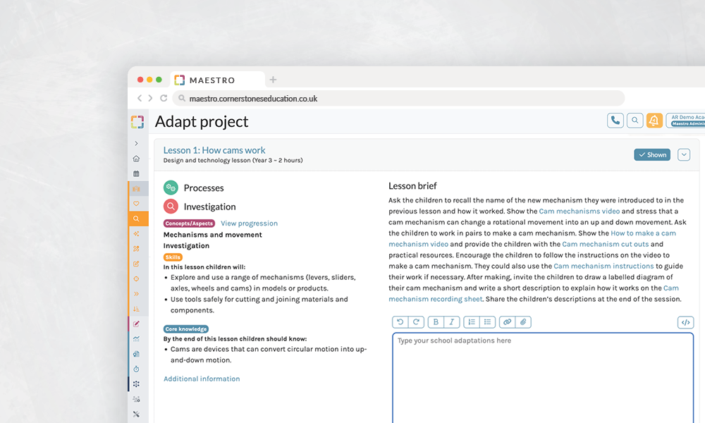A practical and sequenced primary design & technology curriculum, created by subject experts for teachers of all levels of confidence. Teach it as it is, or use Maestro, to adapt and localise.