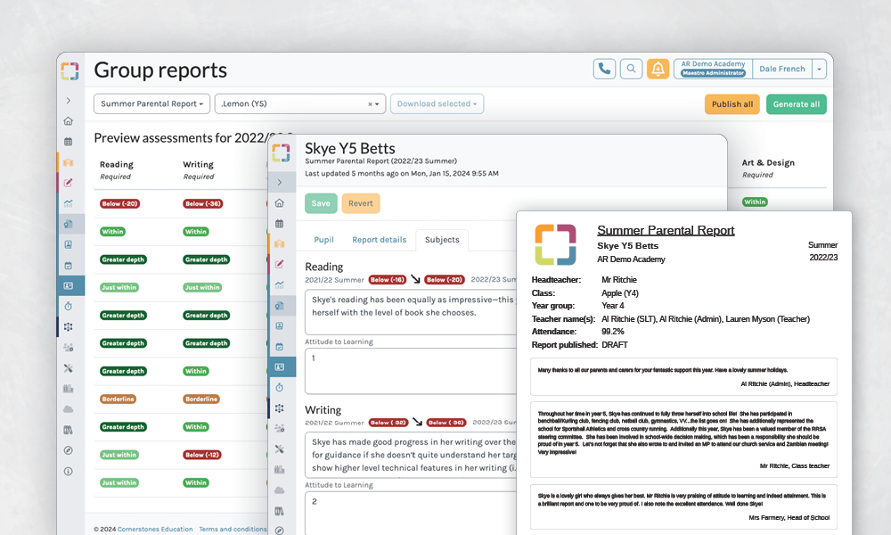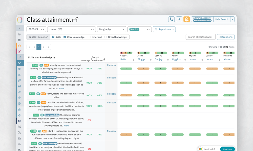 Instant information about a current classโ€™s attainment, learning and coverage of the schoolโ€™s curriculum.ย
