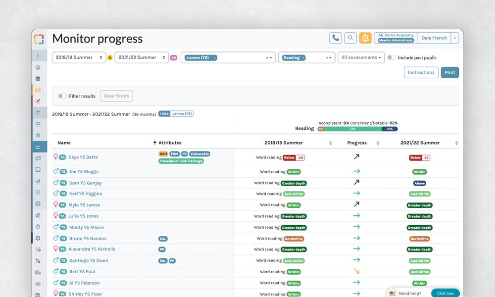 Integrate year group, class or groupย  insightful attainment and progress dataย between two points in time.