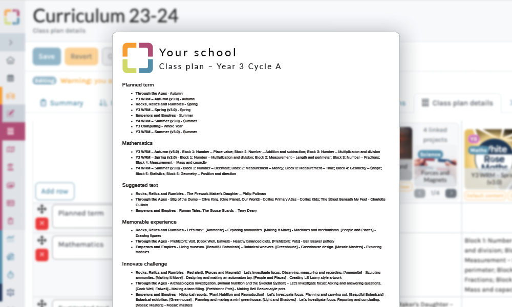 Ability to create, adapt, customise and share your whole school curriculum intent and plans.