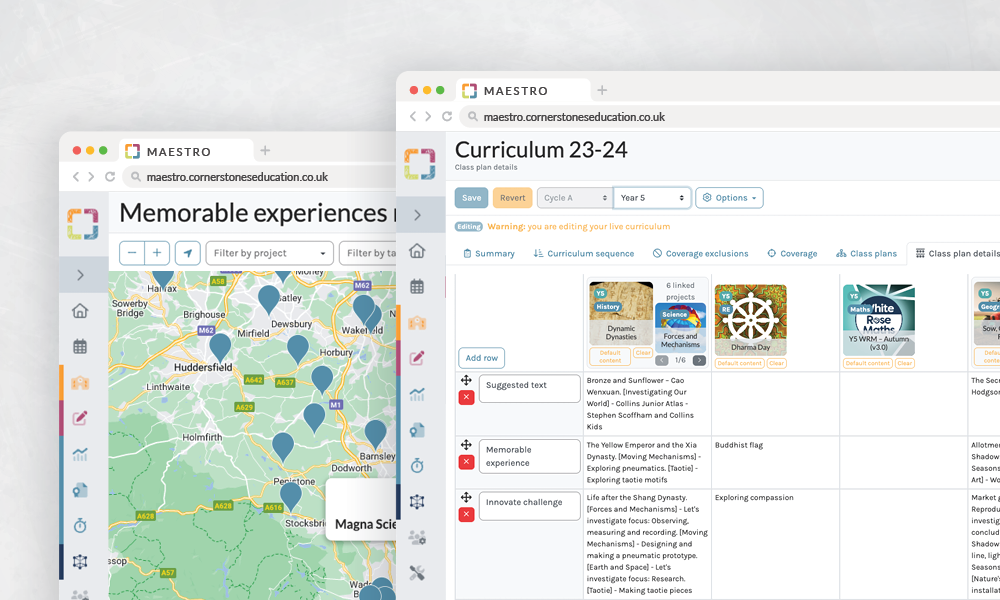 View and share whole school planning online, on Maestro, a secure platform linked to your management information system (MIS). No need to print or keep endless dusty folders! Live and editable planning and the ability to upload and share your own resources and files.