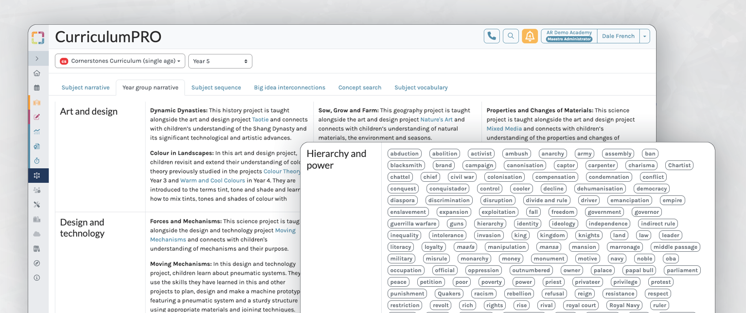 The CurriculumPRO tool allows you to find and articulate your curriculum content, sequencing and narrative structure in an easy and reliable way. Itโs so much easier than retrieving folders and printing reams of paper โ and is far more accurate.
