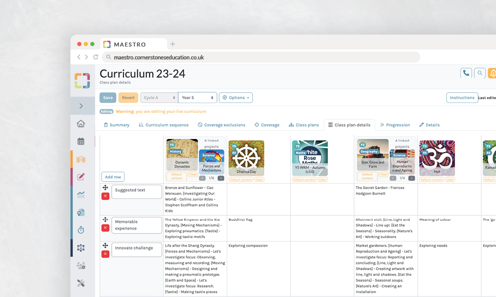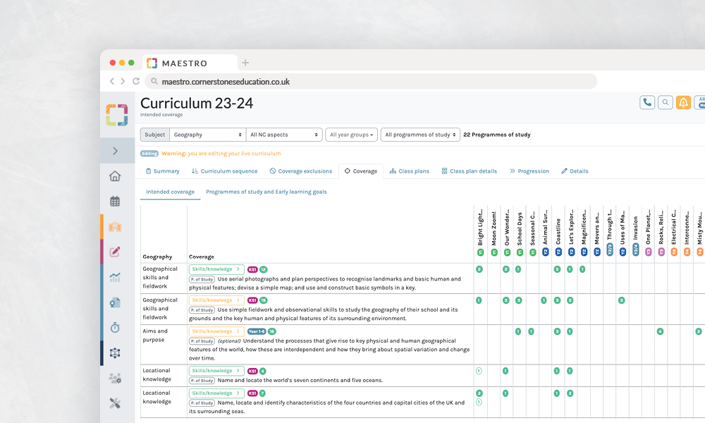 Clearly see the intended and actual coverage of your curriculum and the progression of all subjects within it.
