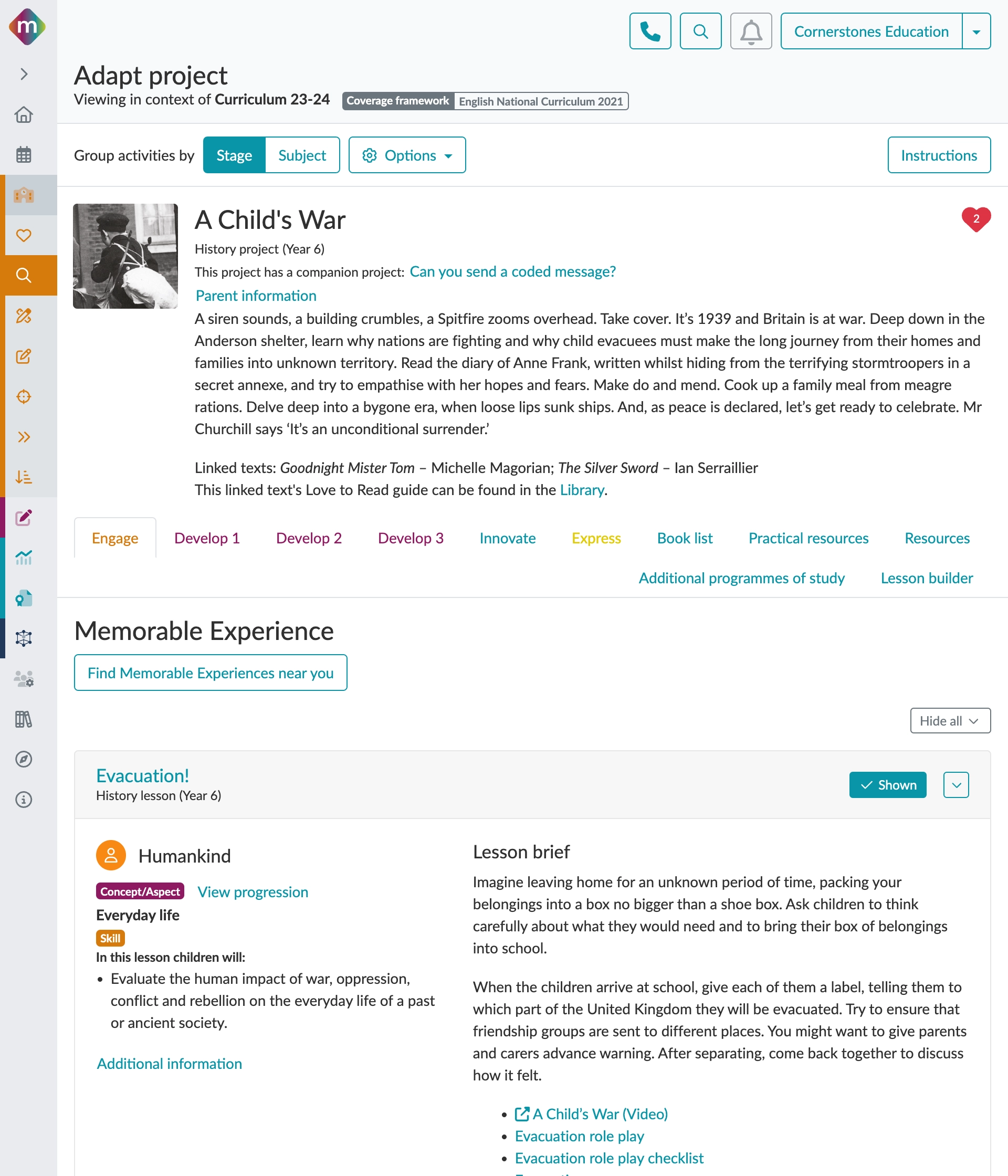 It is built upon our four-stage primary focused pedagogy – Engage, Develop, Innovate, Express – to get your children curious about the project ahead, develop and then use new skills and knowledge, before finally allowing them to express their thoughts, ideas and reflections on what they have learnt.