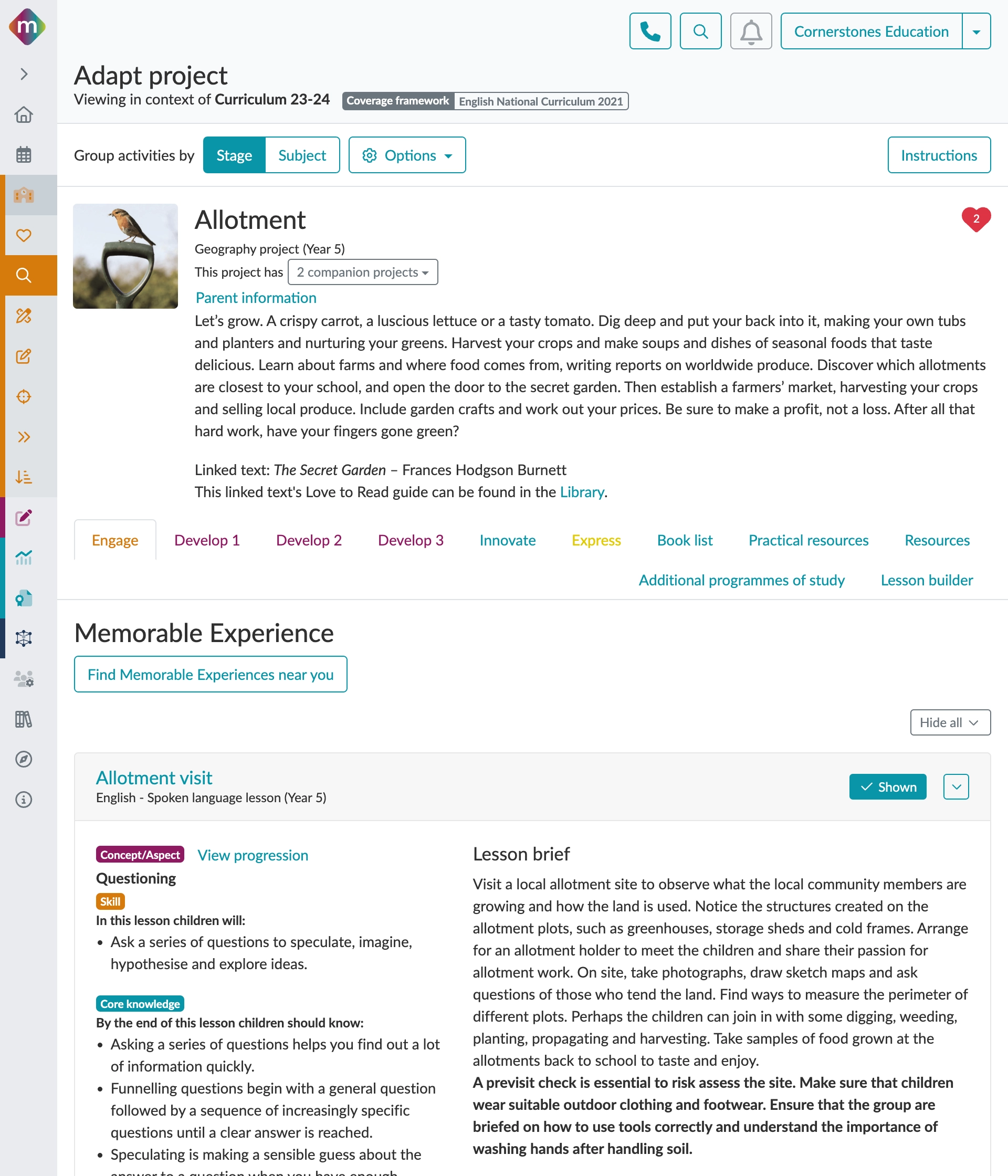 It is built upon our four-stage primary focused pedagogy โ Engage, Develop, Innovate, Express โ to get your children curious about the project ahead, develop and then use new skills and knowledge, before finally allowing them to express their thoughts, ideas and reflections on what they have learnt.