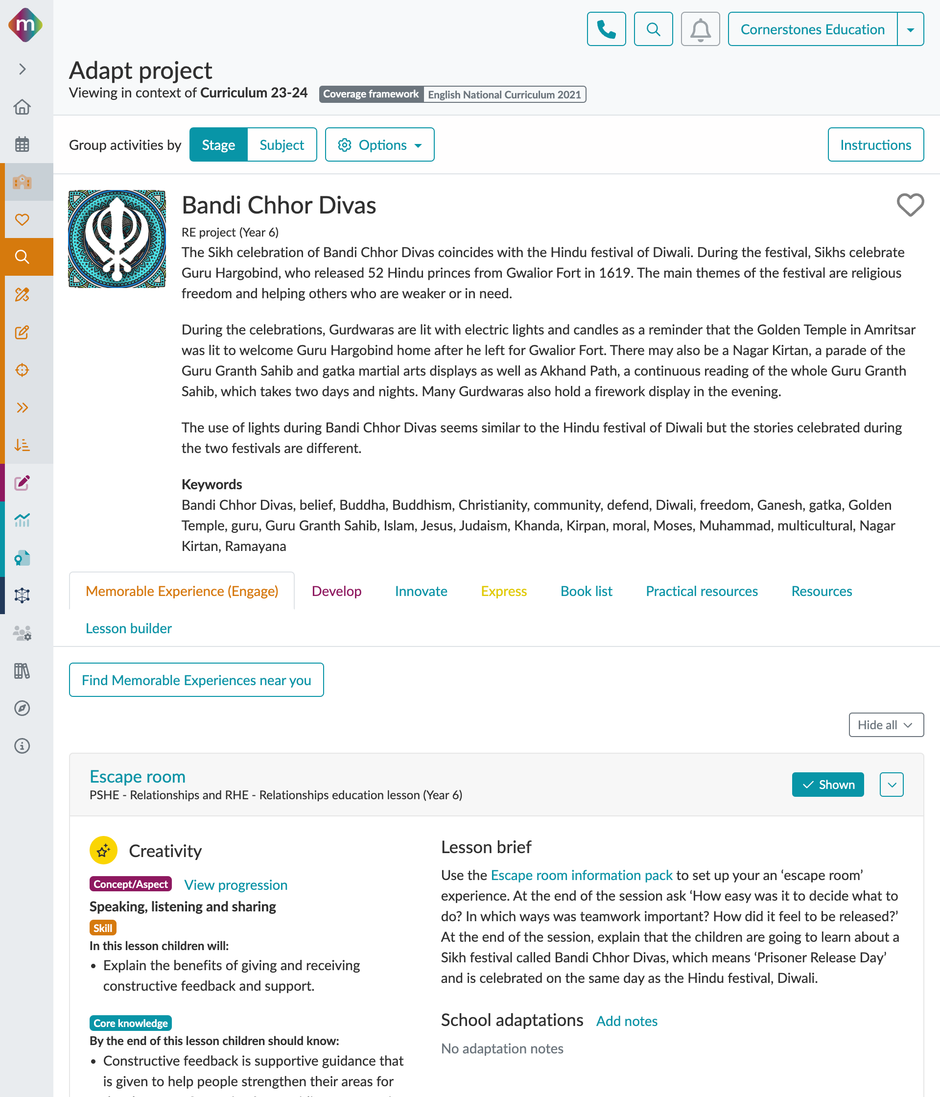 If youโ€™re looking for inspiring lessons and resources across the whole Religious Education curriculum, then the Cornerstones Religious Education Curriculum offers everything you need for single or multi-year groups, with a collection of projects designed by subject experts to support teachers and subject leaders at every level of subject knowledge.