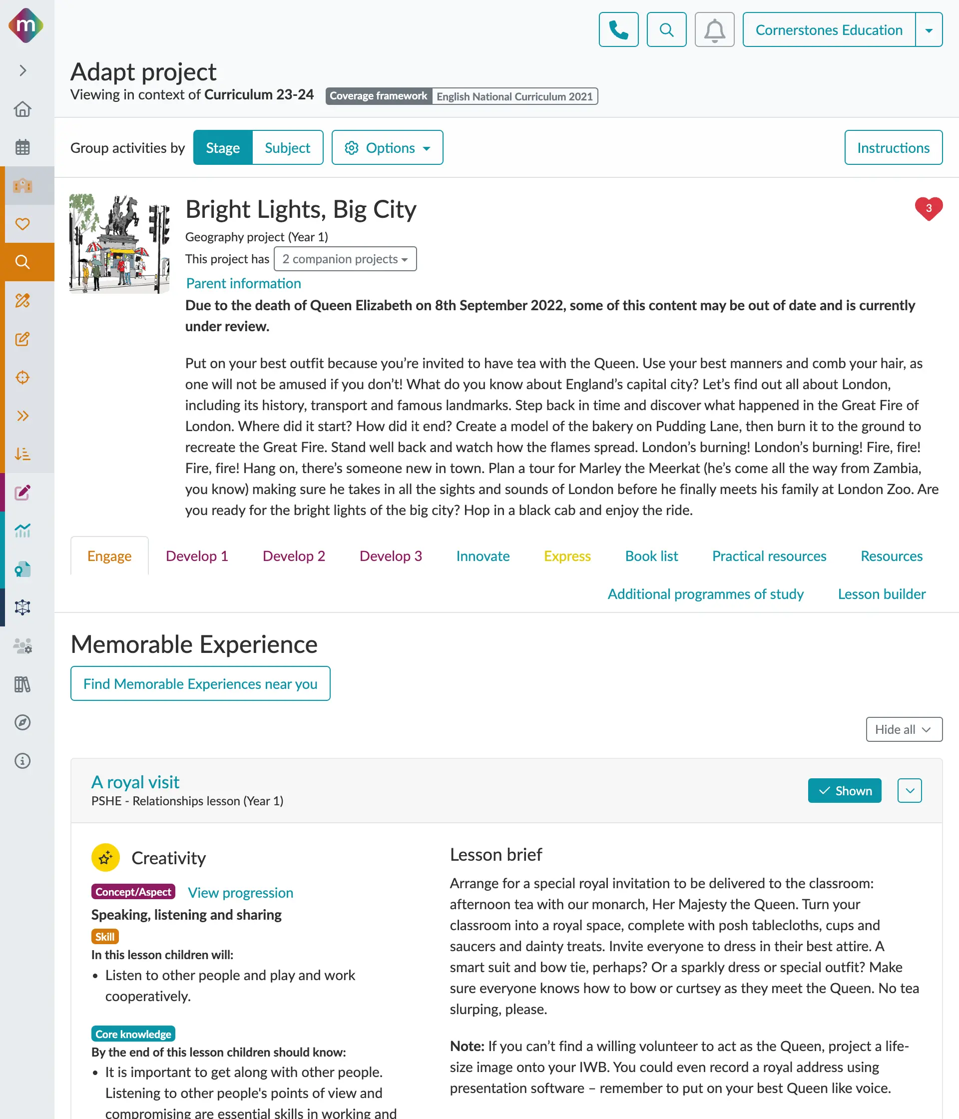 It is built upon our four-stage primary focused pedagogy โ Engage, Develop, Innovate, Express โ to get your children curious about the project ahead, develop and then use new skills and knowledge, before finally allowing them to express their thoughts, ideas and reflections on what they have learnt.