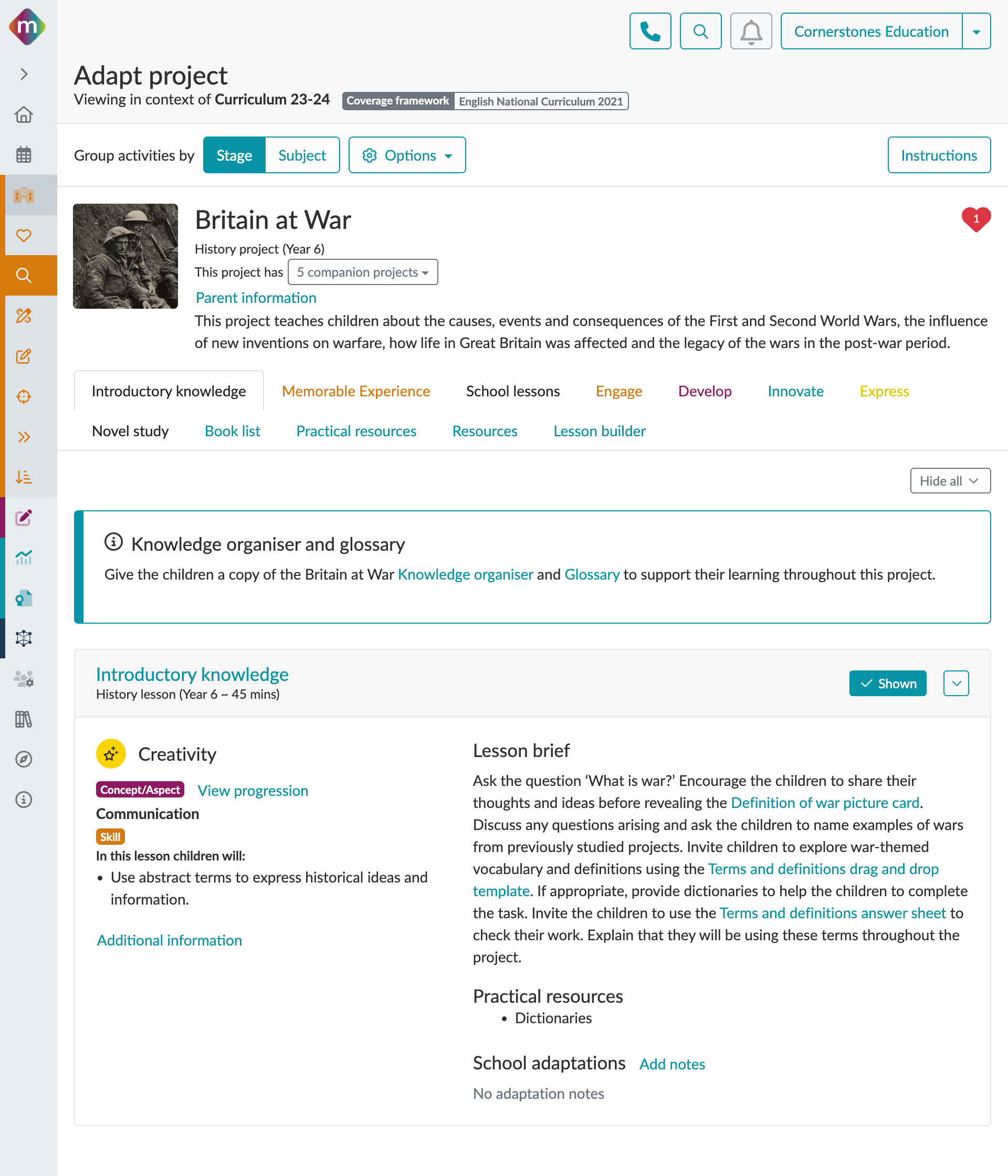 It is built upon our four-stage primary focused pedagogy โ Engage, Develop, Innovate, Express โ to get your children curious about the project ahead, develop and then use new skills and knowledge, before finally allowing them to express their thoughts, ideas and reflections on what they have learnt.