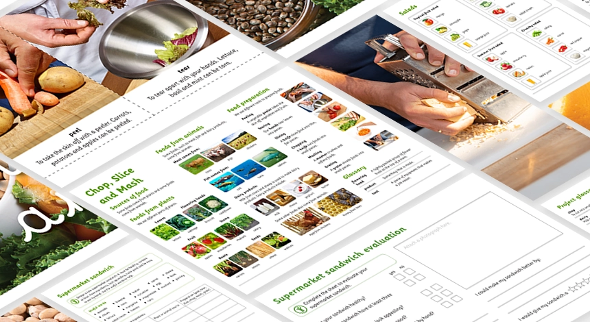 This project teaches children about sources of food and the preparatory skills of peeling, tearing, slicing, chopping, mashing and grating. They use this knowledge and techniques to design and make a supermarket sandwich according to specific design criteria.