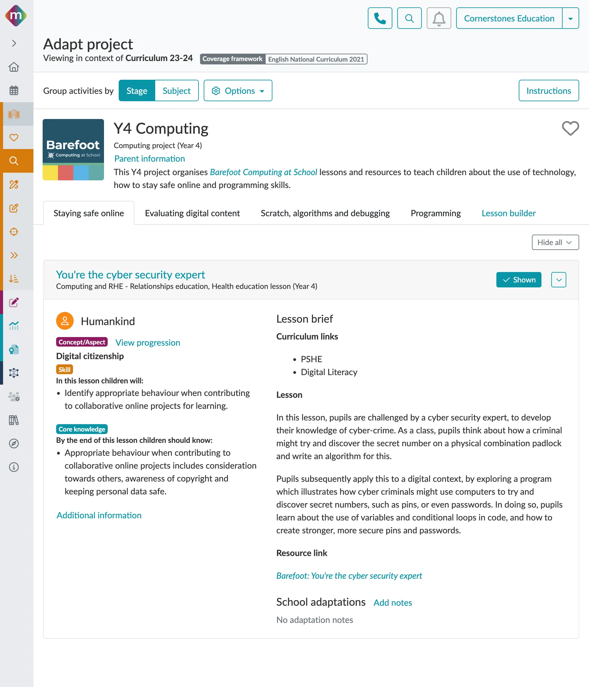 If youโre looking for inspiring lessons and resources across the whole curriculum, then the Cornerstones Curriculum offers everything you need for single or multi-year groups, with a collection of projects designed by subject experts to support teachers and subject leaders at every level of subject knowledge.