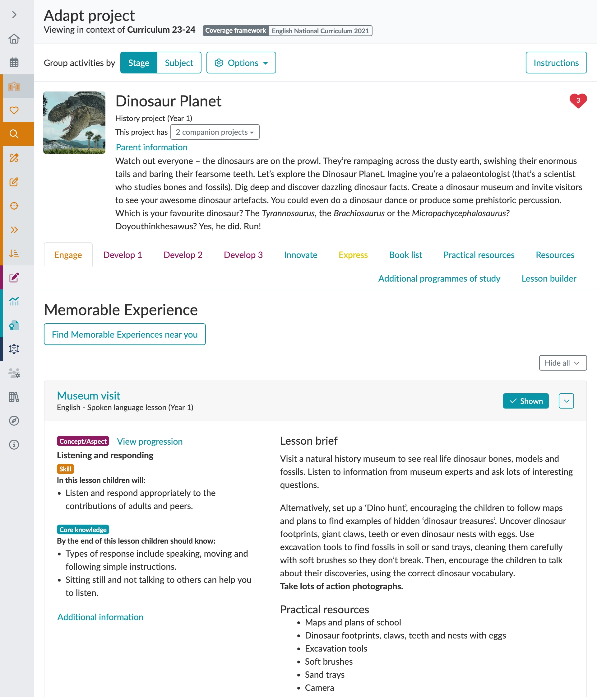 It is built upon our four-stage primary focused pedagogy โ Engage, Develop, Innovate, Express โ to get your children curious about the project ahead, develop and then use new skills and knowledge, before finally allowing them to express their thoughts, ideas and reflections on what they have learnt.
