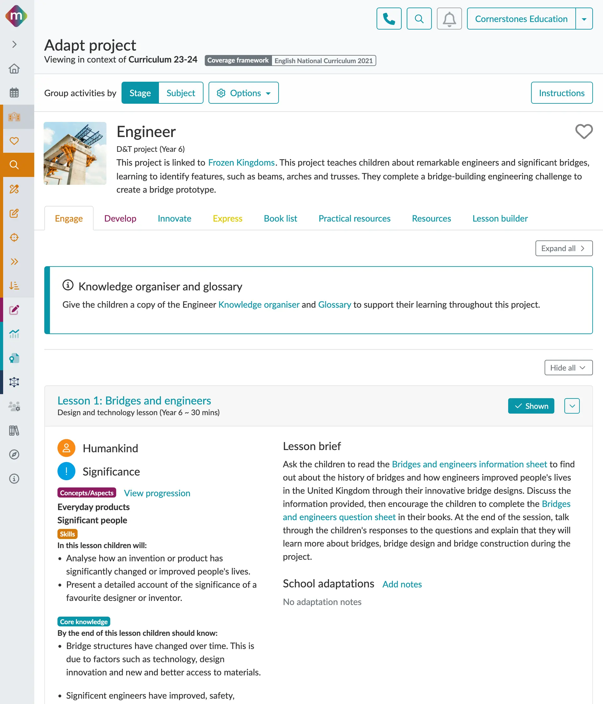 It is built upon our four-stage primary focused pedagogy โ Engage, Develop, Innovate, Express โ to get your children curious about the project ahead, develop and then use new skills and knowledge, before finally allowing them to express their thoughts, ideas and reflections on what they have learnt.