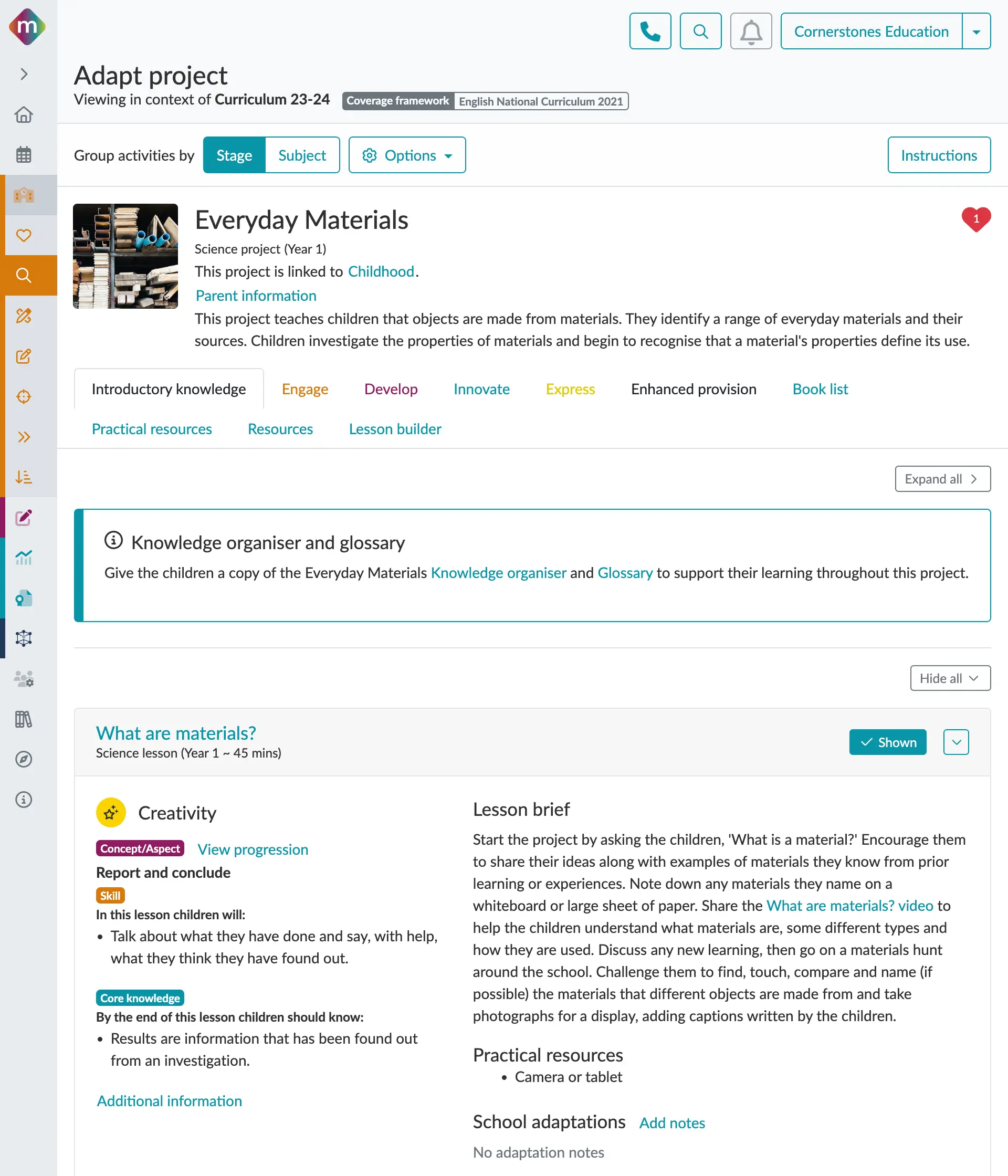It is built upon our four-stage primary focused pedagogy โ Engage, Develop, Innovate, Express โ to get your children curious about the project ahead, develop and then use new skills and knowledge, before finally allowing them to express their thoughts, ideas and reflections on what they have learnt.