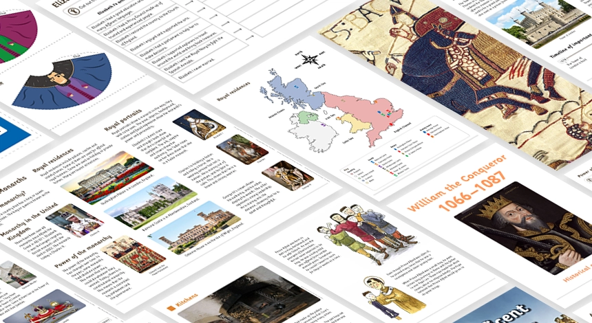 This project teaches children about the English and British monarchy from AD 871 to the present day. Using timelines, information about royal palaces, portraits and other historical sources, they build up an understanding of the monarchs and then research six of the most significant sovereigns.