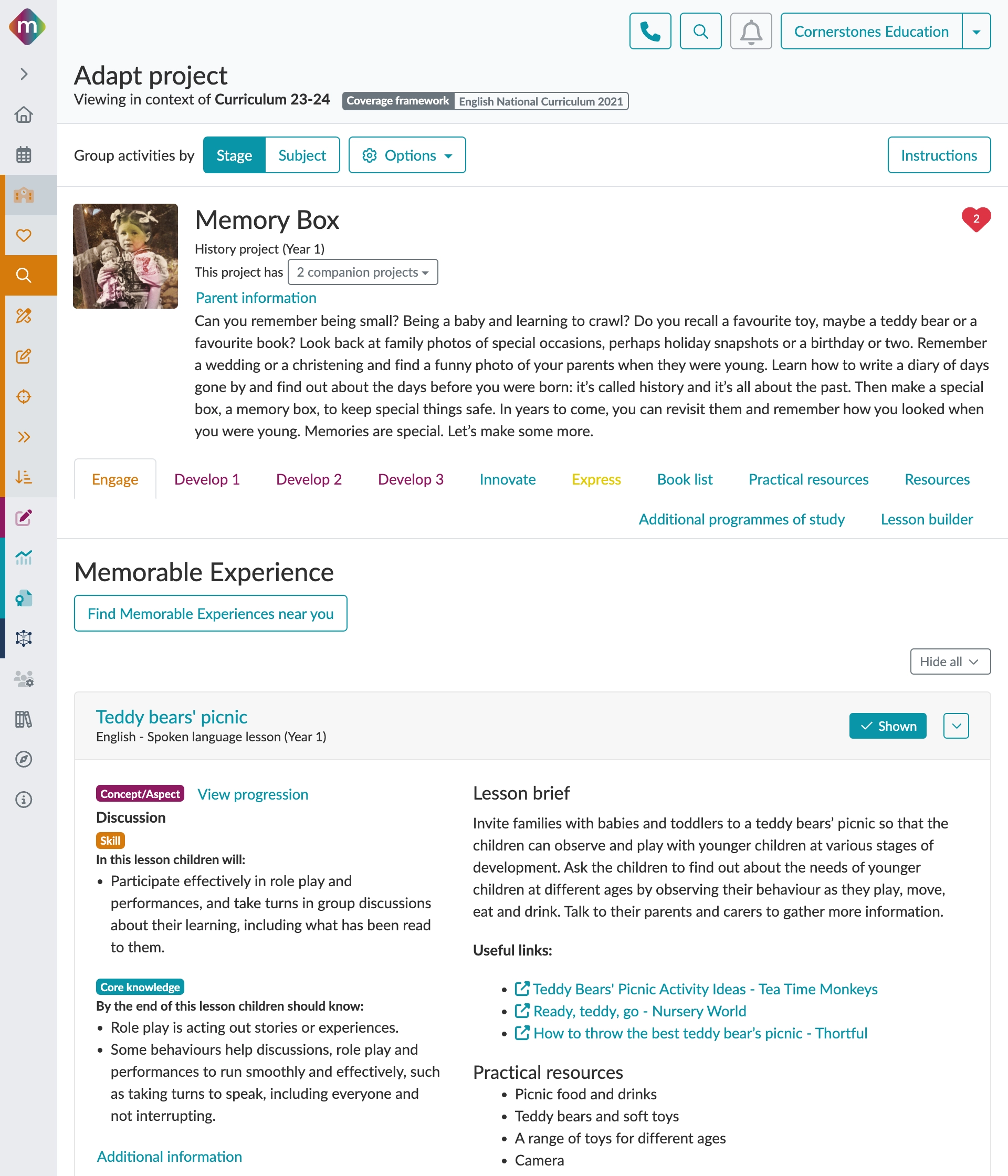 It is built upon our four-stage primary focused pedagogy โ Engage, Develop, Innovate, Express โ to get your children curious about the project ahead, develop and then use new skills and knowledge, before finally allowing them to express their thoughts, ideas and reflections on what they have learnt.