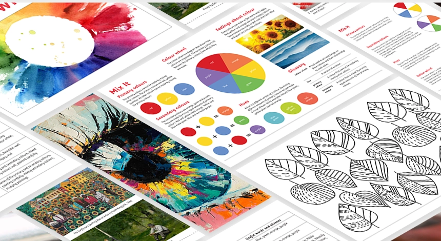 This project teaches children about basic colour theory by studying the colour wheel and colour mixing. It includes an exploration of primary and secondary colours and how artists use colour in their artwork.