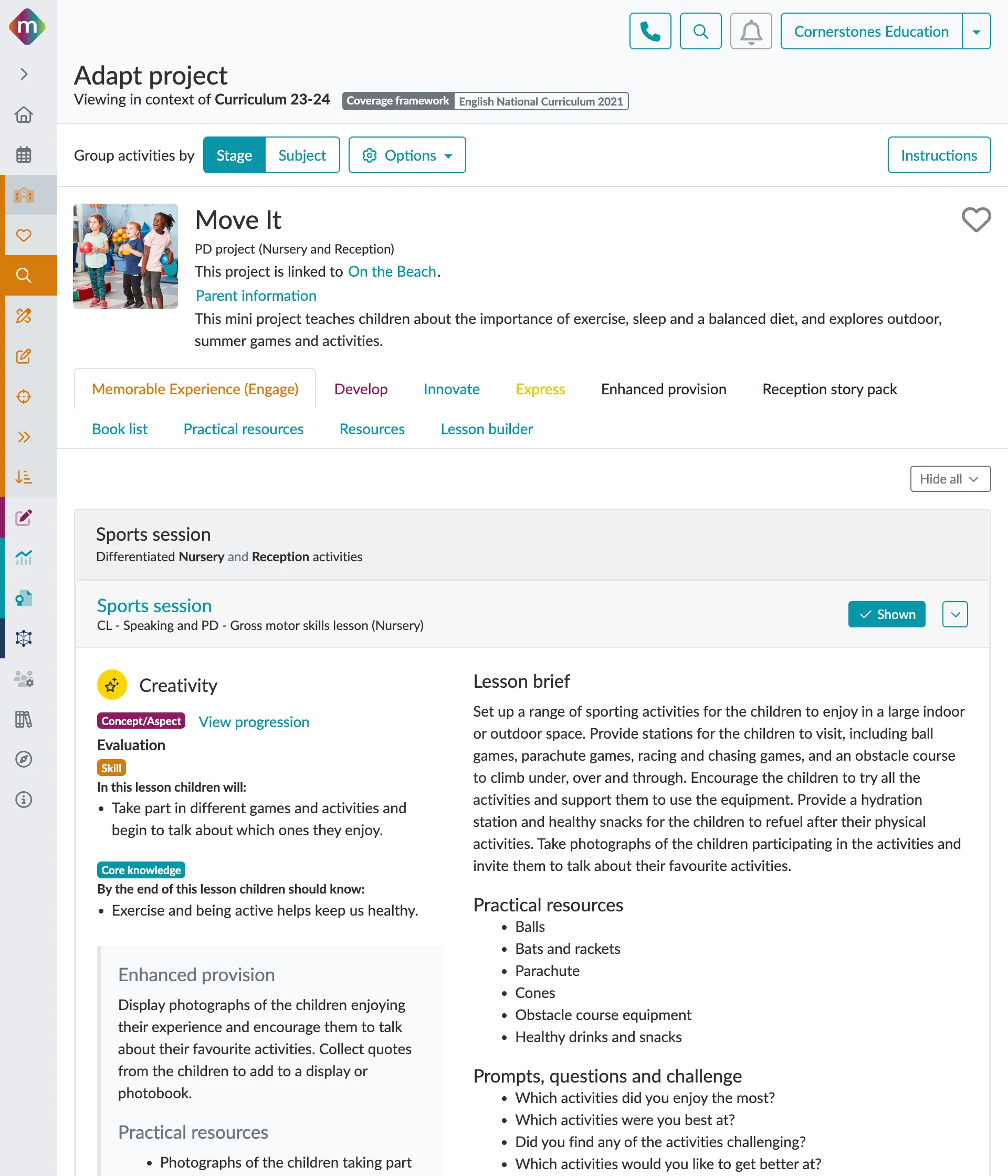Move It provides a structured approach to subject, outlining key subjects and topics including: