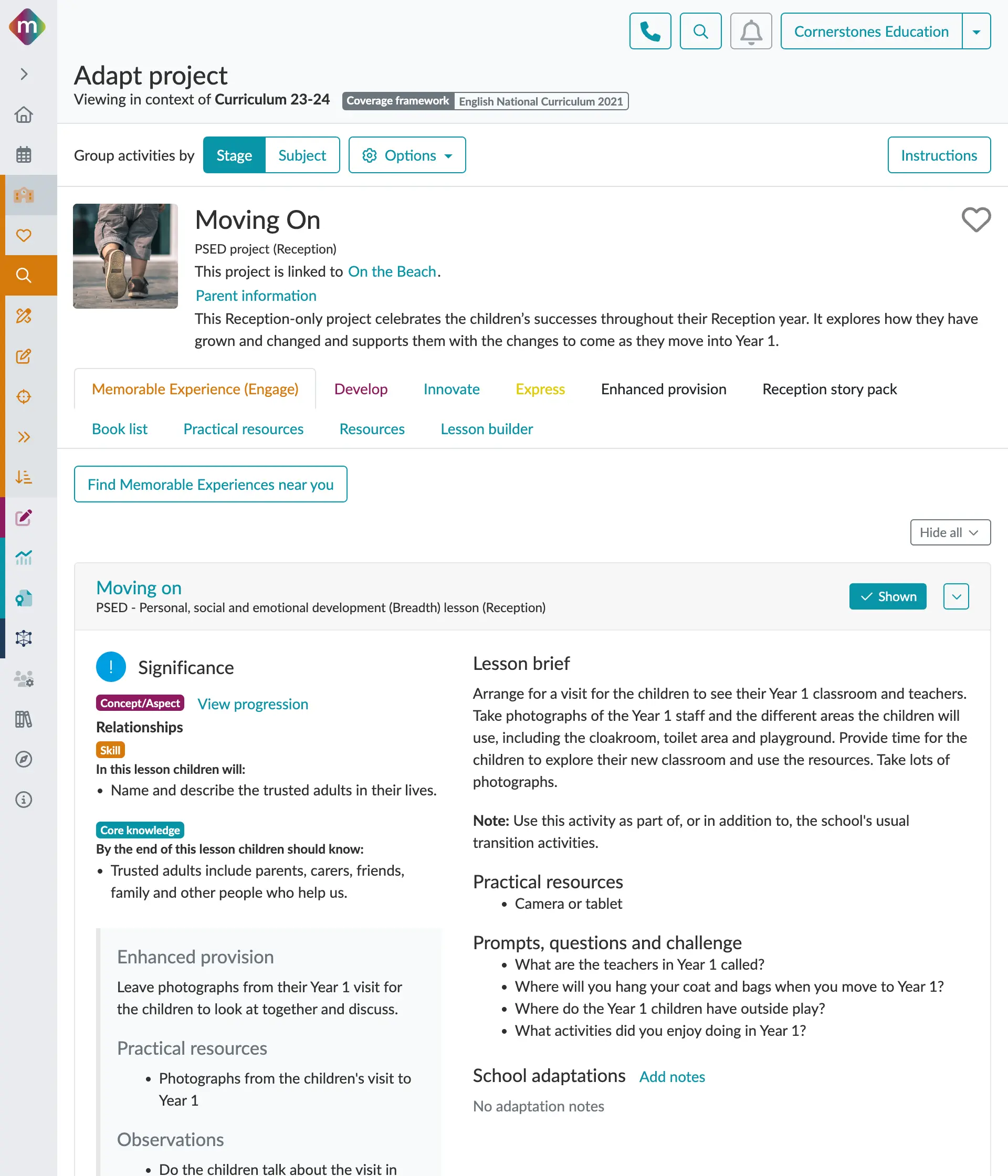 Moving On provides a structured approach to subject, outlining key subjects and topics including:
