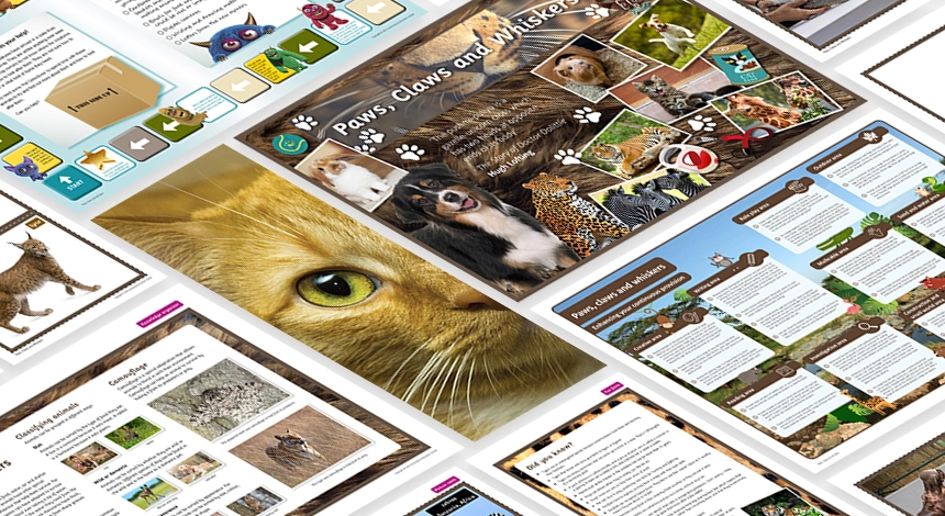 Develop childrenโs knowledge of shape, colour, pattern and texture with Paws, Claws and Whiskers, our comprehensively resourced art and design project. The supporting high-quality teaching resources help Year 1 children observe, draw and recreate wild animals and pets, as they find out more about them.
