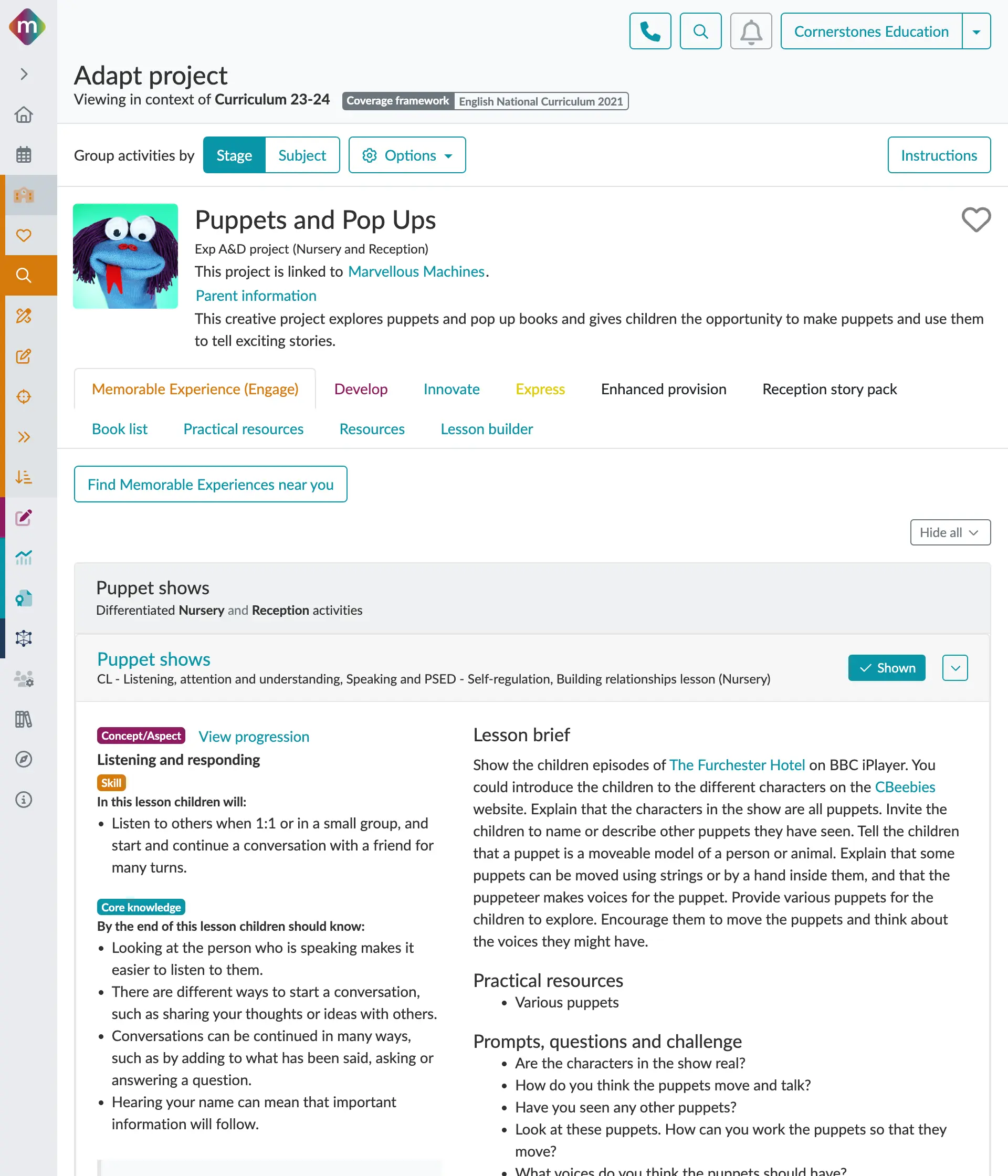 Puppets and Pop Ups provides a structured approach to subject, outlining key subjects and topics including: