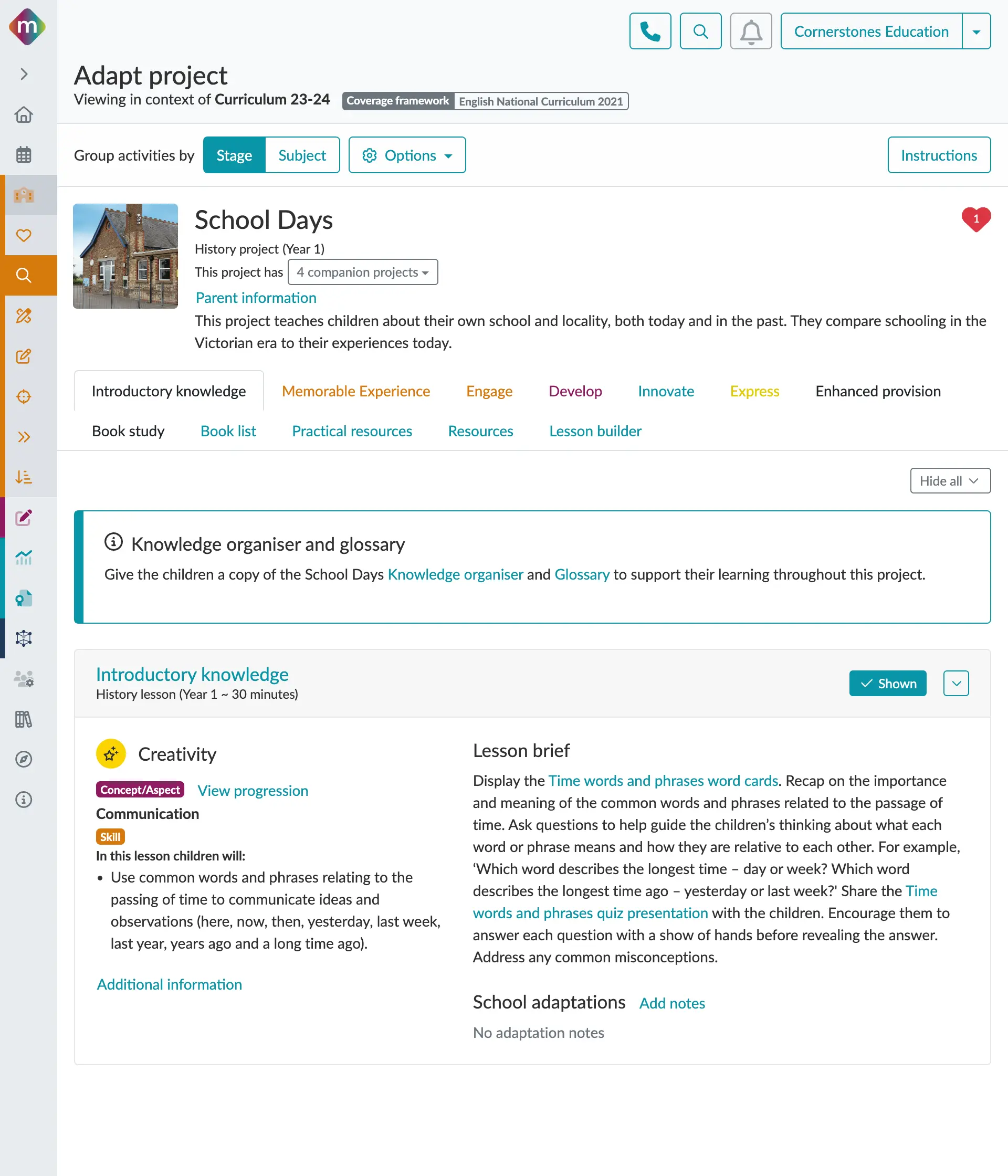 It is built upon our four-stage primary focused pedagogy โ€“ Engage, Develop, Innovate, Express โ€“ to get your children curious about the project ahead, develop and then use new skills and knowledge, before finally allowing them to express their thoughts, ideas and reflections on what they have learnt.