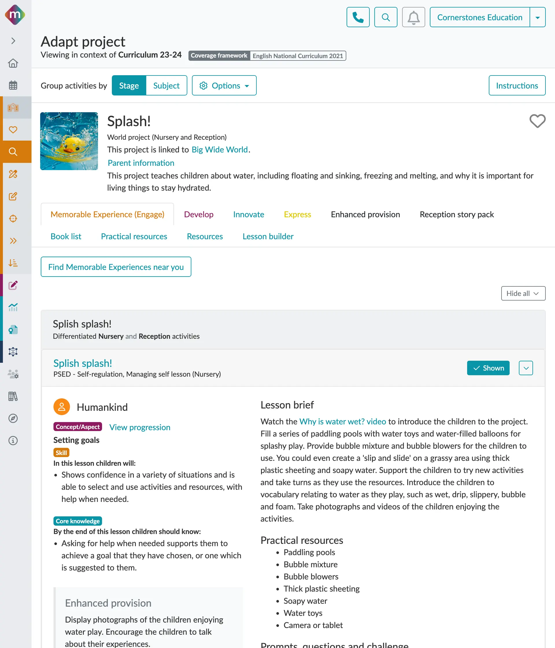 Splash! provides a structured approach to subject, outlining key subjects and topics including: