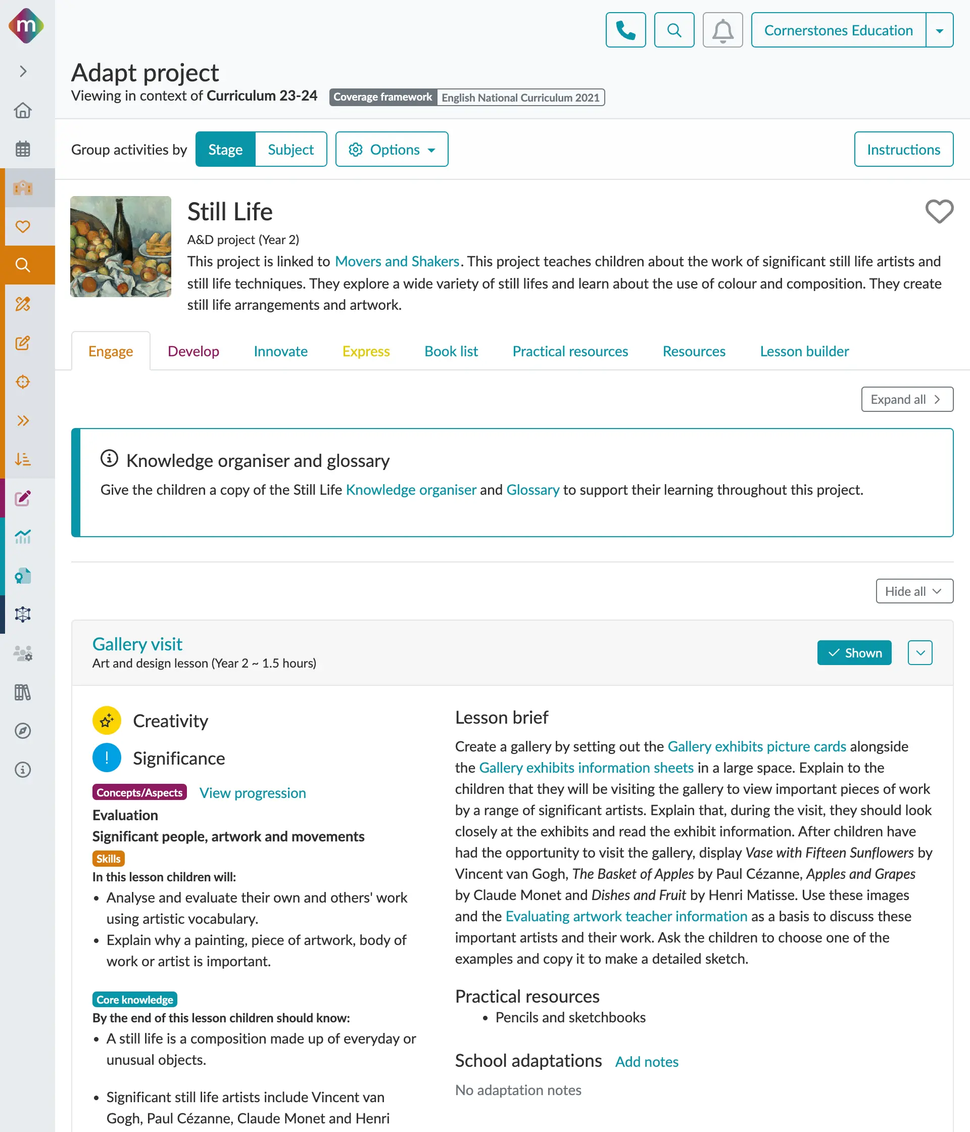 It is built upon our four-stage primary focused pedagogy โ Engage, Develop, Innovate, Express โ to get your children curious about the project ahead, develop and then use new skills and knowledge, before finally allowing them to express their thoughts, ideas and reflections on what they have learnt.