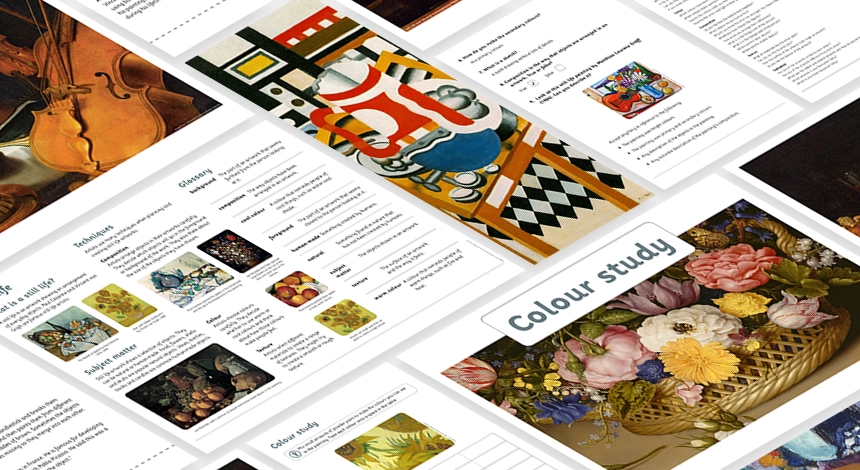 This project teaches children about the work of significant still life artists and still life techniques. They explore a wide variety of still lifes and learn about the use of colour and composition. They create still life arrangements and artwork.