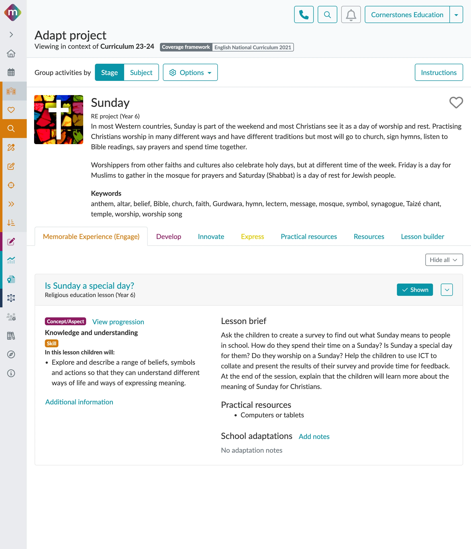 This project teaches children about Sunday. In most Western countries, Sunday is part of the weekend and most Christians see it as a day of worship and rest. Practising Christians worship in many different ways and have different traditions but most will go to church, sing hymns, listen to Bible readings, say prayers and spend time together.