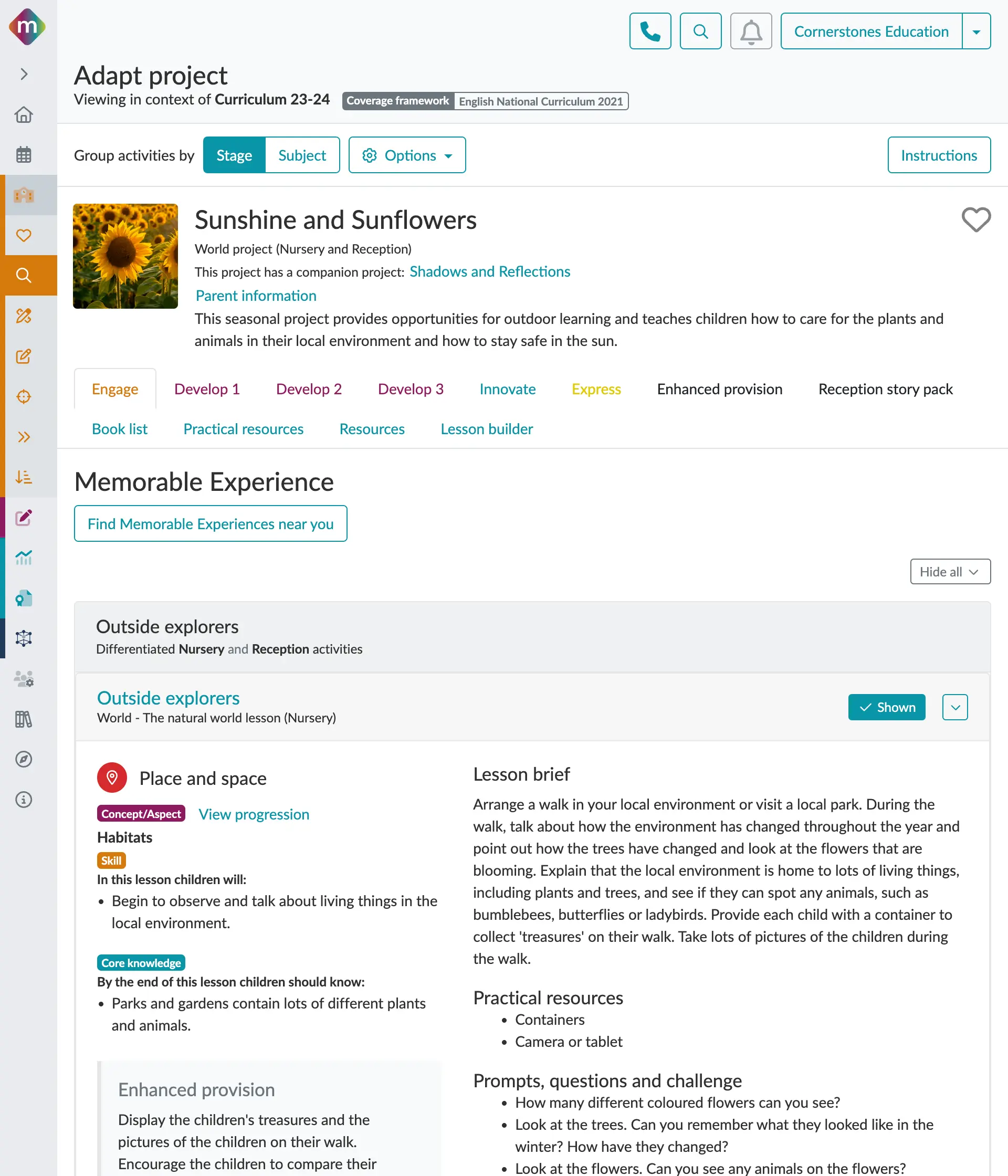 Sunshine and Sunflowers provides a structured approach to subject, outlining key subjects and topics including:
