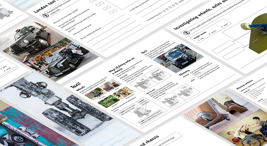 This project teaches children about wheels, axles and chassis and how they work together to make a vehicle move.
